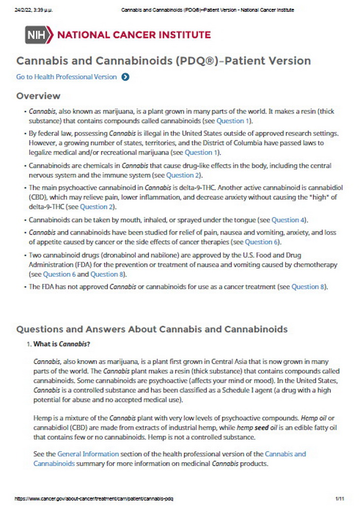 Cannabis and Cannabinoids (PDQ®) – Patient Version [Κάνναβη και κανναβινοειδή (PDQ®) – Έκδοση για ασθενείς](το βιβλίο σε μορφή αρχείου PDF)