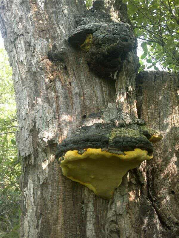 Το καρπικό σώμα αυτού του μανιταριού μεγαλώνει χρόνο με το χρόνο και έχει ένα σκληρό, σαν ράφι σχήμα, που συχνά μοιάζει με πέταλο, εξ ου και το όνομα “Black Hoof Mushroom” (Μαύρο Μανιτάρι Οπλής). Όταν είναι φρέσκο, η άνω επιφάνεια είναι σκούρο καφέ και γίνεται μαύρη καθώς στεγνώνει. Η κάτω πλευρά, η οποία έχει μικρούς πόρους, ξεκινά με σκουριασμένο καφέ και σκουραίνει όταν στεγνώνει. Στο εσωτερικό, η σάρκα είναι καφέ, με ένα σκληρό μαύρο εξωτερικό στρώμα στην κορυφή. Οι σωληνωτές δομές στο εσωτερικό αποκτούν ένα κανελί κίτρινο-καφέ χρώμα όταν στεγνώνουν[3].